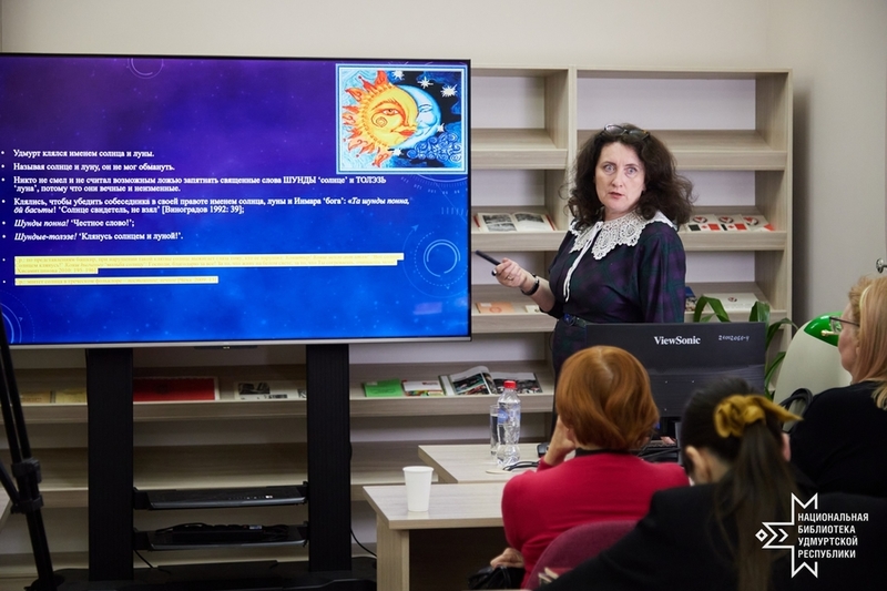 10. joulukuuta Tatjana Dušenkovan Udmurttien kulttuurikoodit -sarjan yleisö kokoontui Udmurtian Kansalliskirjaston kansalliseen ja alueelliseen kirjallisuussaliin. Tällä kertaa keskityttiin tähtitieteellisen koodin – šundan – aurinkoaspektiin.