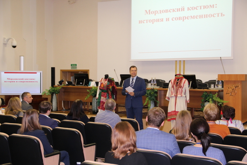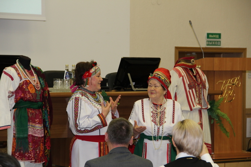 Pääkirjastonhoitaja V. I. Pronina piti katsauksen ja multimediaesitelmän sekä kertoi mordvalaisten puvun tutkimushistoriasta ja käsiteltävää aihetta koskevista tieteellisistä töistä.