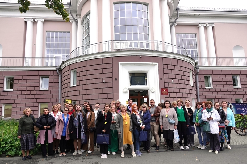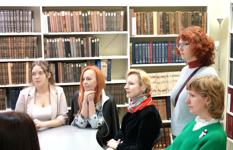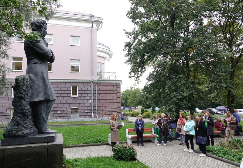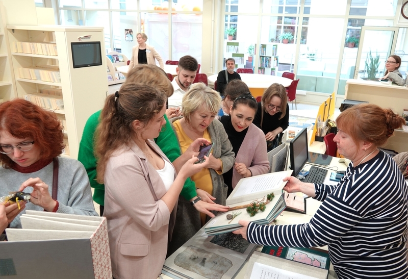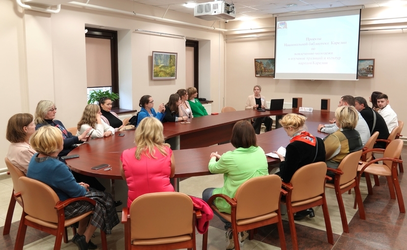 Kirjaston asiantuntijat järjestivät vieraillemme kaksi opastettua retkeä. Alussa oli kävely Puškinskaja –katua pitkin osana Luetaan katuja kuin kirjoja –hanketta, ja sitten edustajisto tutustui Kansalliskirjaston tiloihin. Pyöreän pöydän keskustelun aikana kirjaston työntekijät kertoivat konferenssin osallistujille hankkeista, joilla nuoret perehdytään Karjalan kansojen perinteisiin ja kulttuureihin, sekä keskusteltiin tulevista yhteistyömahdollisuuksista.