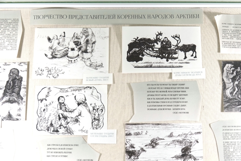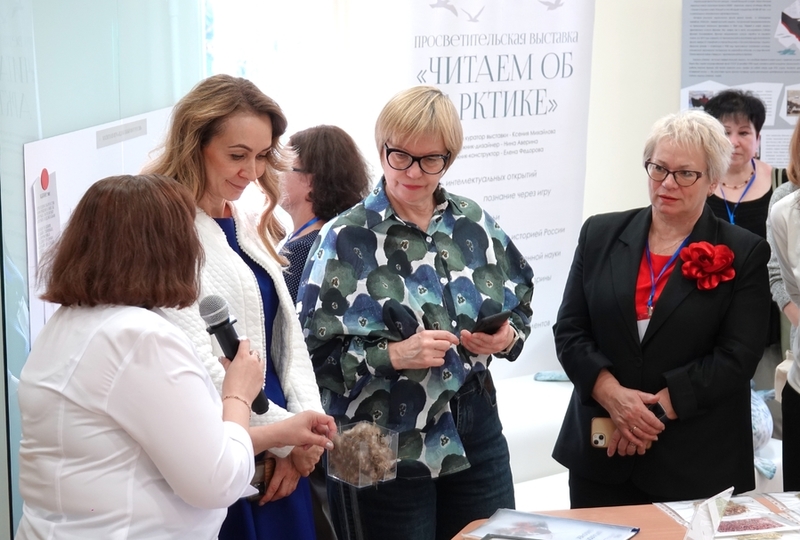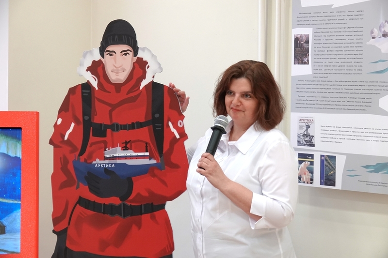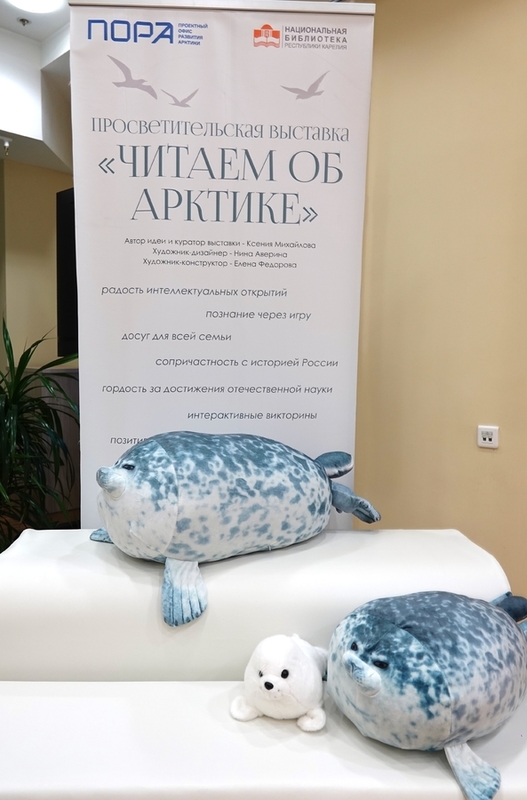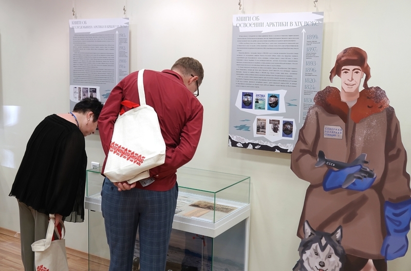 Näyttely auttaa lukijoita suunnistautumaan laajassa kirjameressä. Tietotelineet tarjoavat kymmeneen eri Arktis-aiheeseen liittyvää kirjallisuutta. Lasinäyteikkunoissa on pohjoisia eläinnukkeja, Severnyi poljus 1 - ajelehtivan tutkimusaseman pienoismalli, eskimojen leiri ja paljon muuta – näyttelyesineiden ensisijainen tarkoitus on tutustuttaa lapset kirjojen sisältöön.