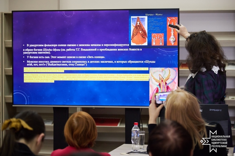 10. joulukuuta Tatjana Dušenkovan Udmurttien kulttuurikoodit -sarjan yleisö kokoontui Udmurtian Kansalliskirjaston kansalliseen ja alueelliseen kirjallisuussaliin. Tällä kertaa keskityttiin tähtitieteellisen koodin – šundan – aurinkoaspektiin.