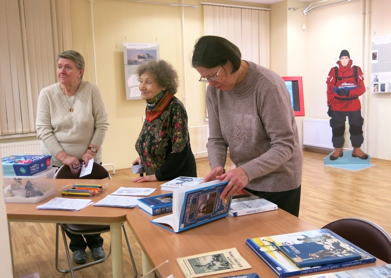 Ensimmäisen ohjelmaosan aikana he kävivät Pohjoisen merireitin 500-vuotisjuhlan kunniaksi Karjalan Kansalliskirjastoon avatussa Luetaan Arktiksesta –näyttelyssä. Osallistujat saivat tietää, että venäläinen Arktis-aiheinen kirjallisuus on valtava ”kirjameri”. Kirjojen joukossa on lastenkirjoja ja aikuisille tarkoitettuja seikkailuromaaneja, tieteiskirjallisuutta eläimistä ja pohjoisten maiden valloittajista, runoja ja napapiirimatkailijoiden päiväkirjoja. Näyttelytelineistä löytyy kirjallisuutta, joka liittyy kymmeneen Arktis-aiheeseen. Näyttelyesineet ja interaktiivinen näyttelyalue antavat voimakkaan vaikutelman.