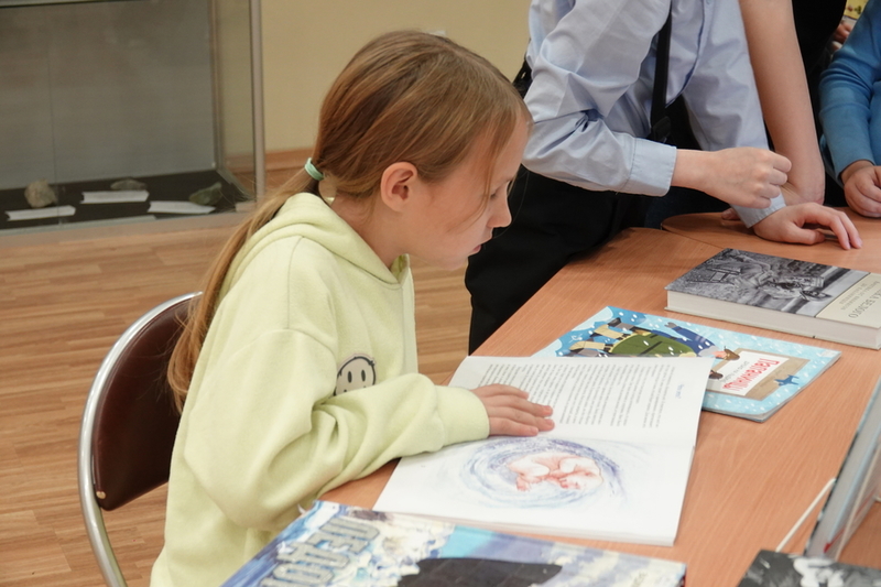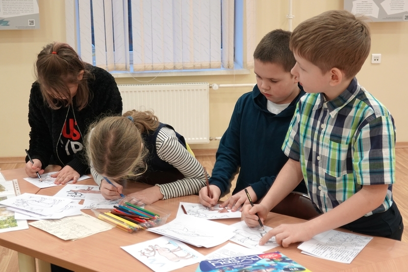 Tietenkin näyttelyn pääkävijät olivat koululaisia. Muistoksi näyttelyssä käymisestä kaikki halukkaat ottivat mukaan VÄRITYSKIRJOJA! Yli 1 500 koululaista Petroskoin ja Äänisjärven piirin 15 koulusta osallistui järjestettyihin ryhmäkierroksiin.