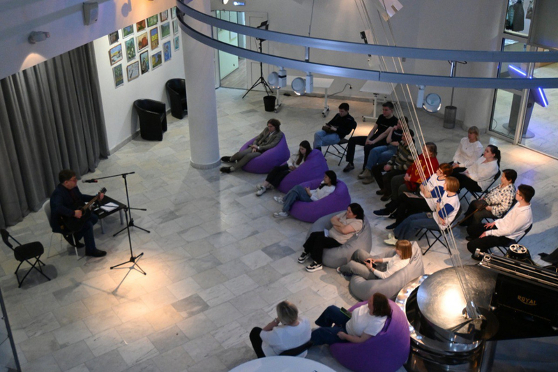 Ilta huipentui Ilja Vehovskin esitykseen, jolloin hän lausui runoja ja soitti kitaraa.
