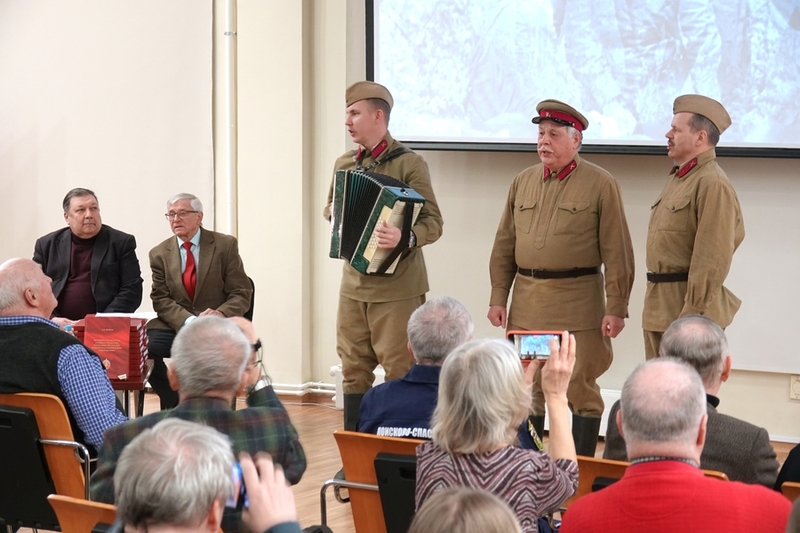 Esittelytilaisuudessa kuunneltiin sota-aikaisia lauluja Redant –sotilaslauluyhtyeen esittäminä. Yhtyeen järjestäjä ja inspiroija on Aleksandr Fedosov.