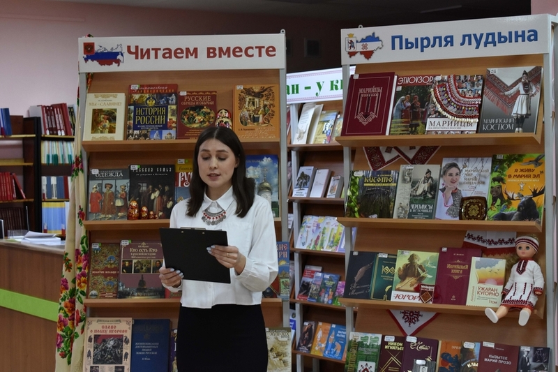 Juhlissa esitettiin kirjanäyttely Luetaan yhdessä, joka tutustutti vieraat Venäjän kulttuurien ja kirjallisuuksien rikkauteen. Pääkirjaston parhaat teokset kuudessa näyttelyosassa esittelivät kuusi kansallista kulttuuria eli venäläistä, marilaista, udmurttilaista, mordvalaista, tšuvassilaista ja tataarilaista.