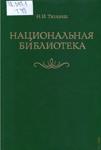 Merkittävää apua Venäjän kansalliskirjastojen muutos- ja kehitysmenetelmien laatimiseen antoi N. I. Tjulinan tutkielma nimeltä ”Kansalliskirjasto: kokemus typologisesta analyysista”, joka ilmestyi vuonna 1988 ja on saatavilla Kansallisessa sähkökirjastossa.