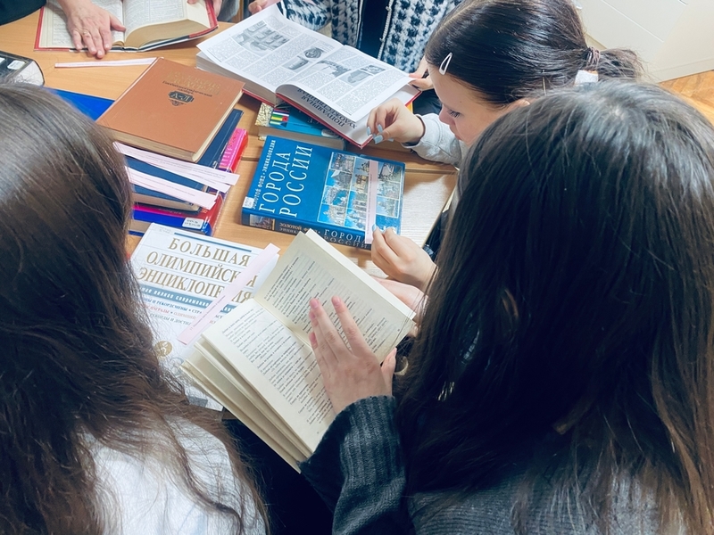 Tieto- ja liikekeskuksessa Tverin koulun nro 34 9-luokkalaisille pidettiin kiinnostava visailumuotoinen oppitunti aiheesta Kaikki tuntevat nämä kirjat. Lapset jakautuivat neljään tiimiin ja käyttävät aktiivisesti alueen kirjaston kokoelmiin kuuluvia sanakirjoja ja tietosanakirjoja etsiäkseen vastauksia erilaisiin kysymyksiin. Esimerkiksi he palauttivat mieleensä huntu –sanan (ranskaksi voile) merkityksen ja Vale-Dmitrin kutsumanimen sekä oppivat Se pyörii sittenkin –fraasin keksijän nimen ja yms.